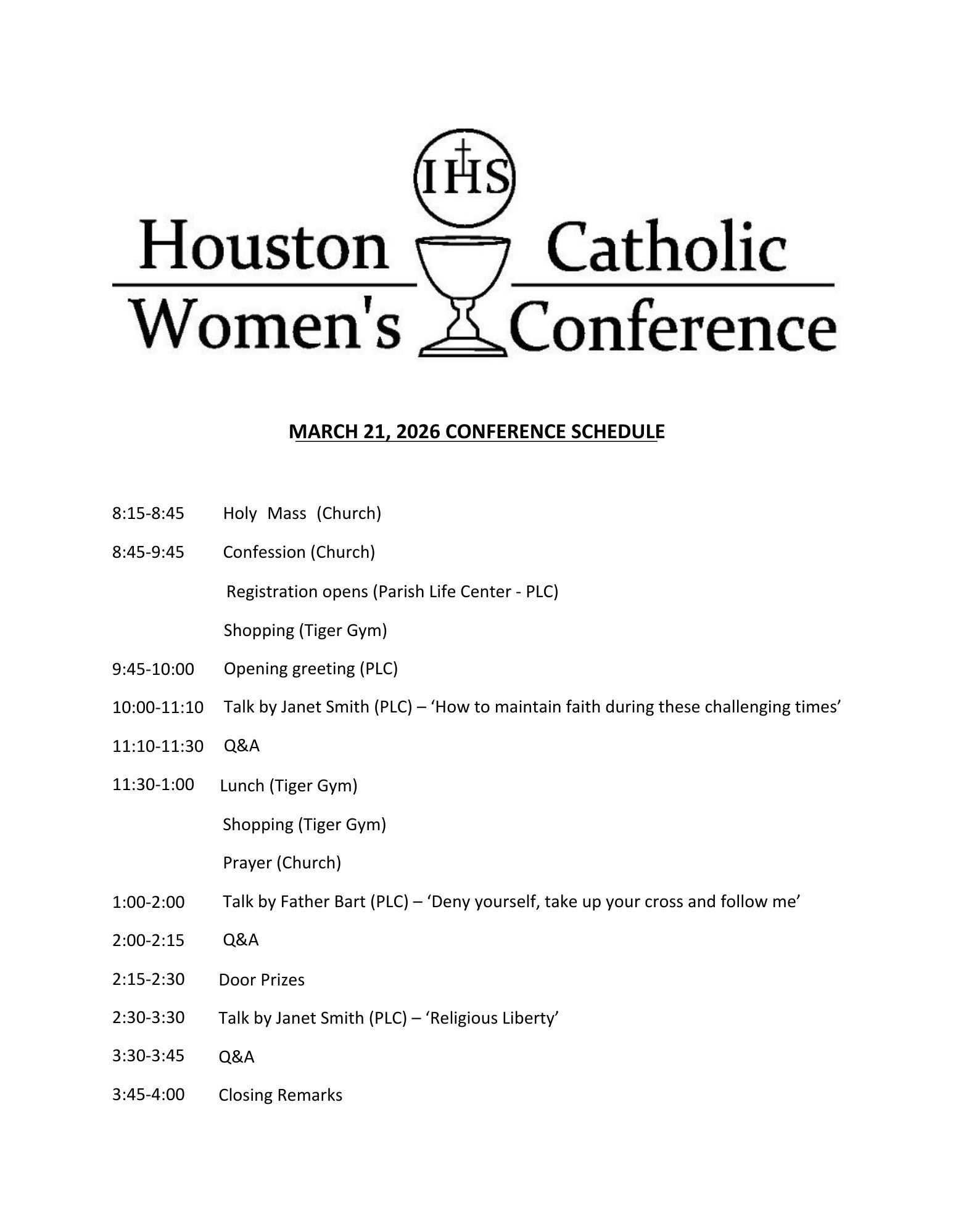 Saturday: 8:15 AM (Every 1st Saturday of the month)